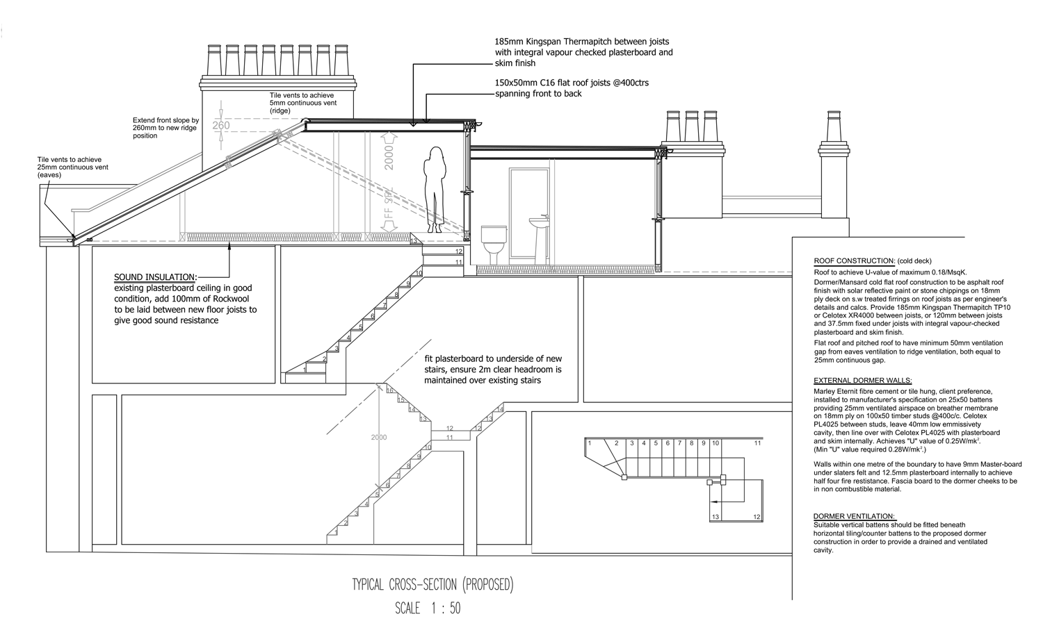 rosenthorpe road cross section plans, a good example of the loft conversion process